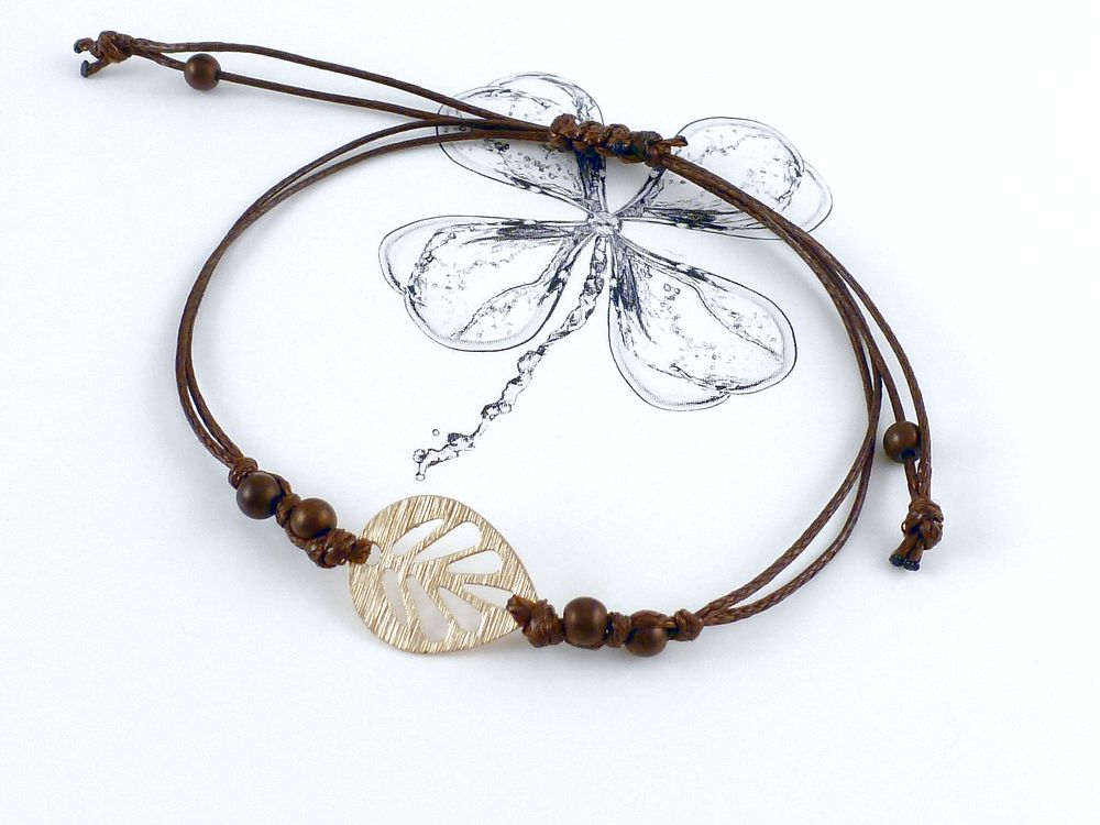 Zartes filigranes Armband mit einem gebürsteten Blatt