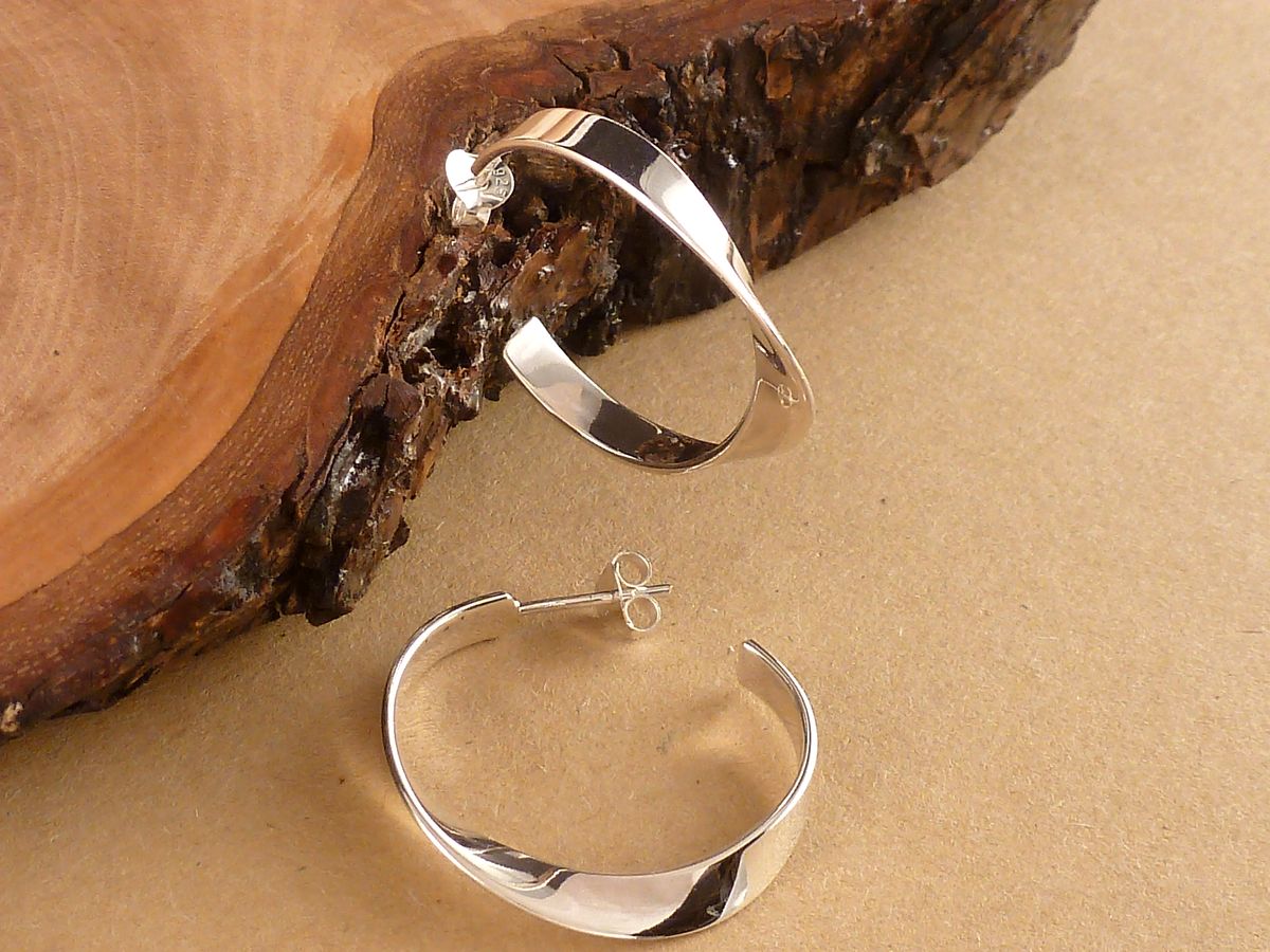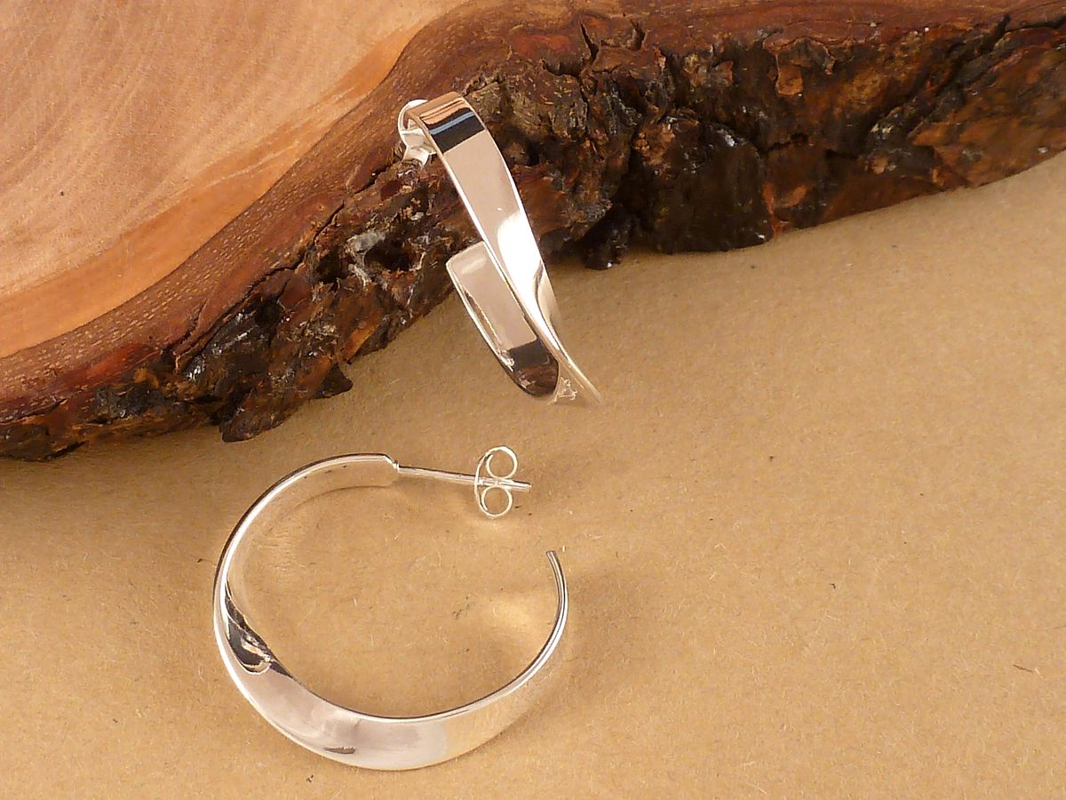 925 Sterling Silber . Die Creolen sind leicht in sich gedreht.
