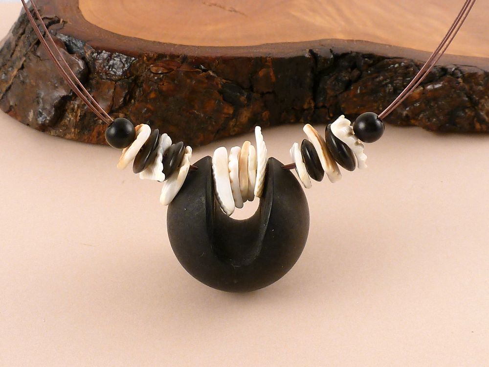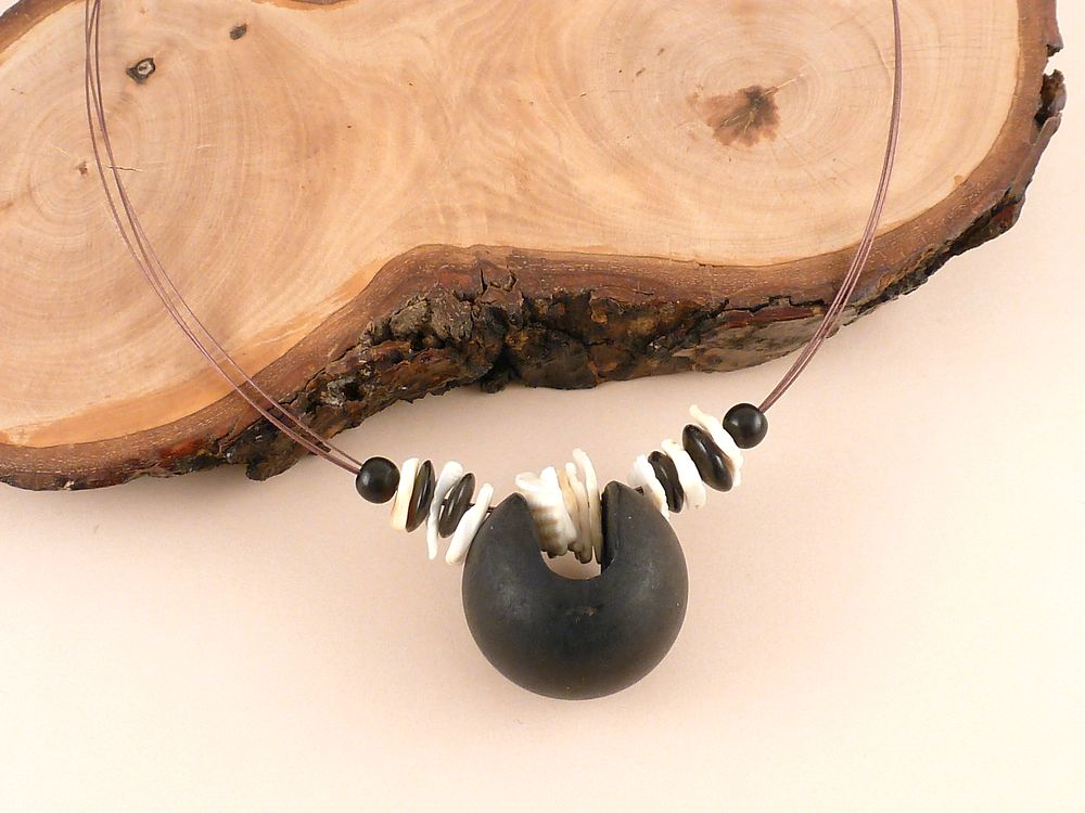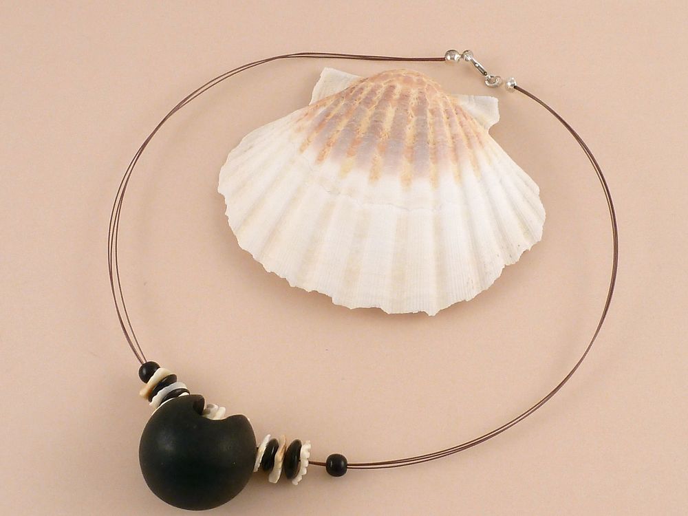 Collier mit Holzkugel und Muschel