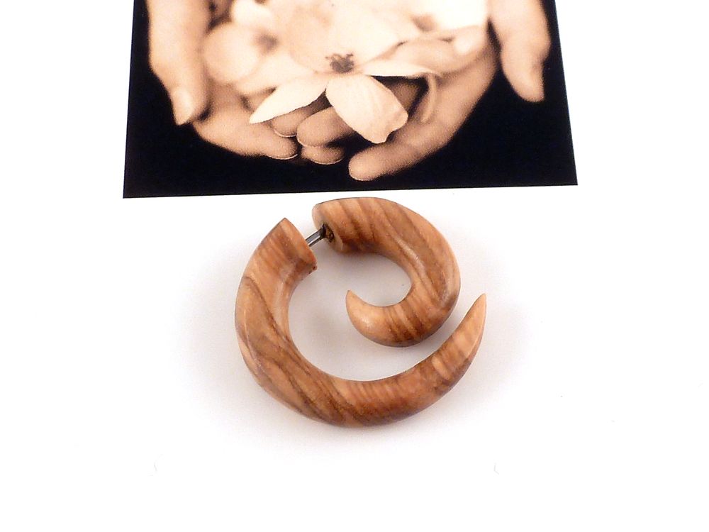 1 Stück Fake Ohrstecker gefertigt aus Oliven Holz