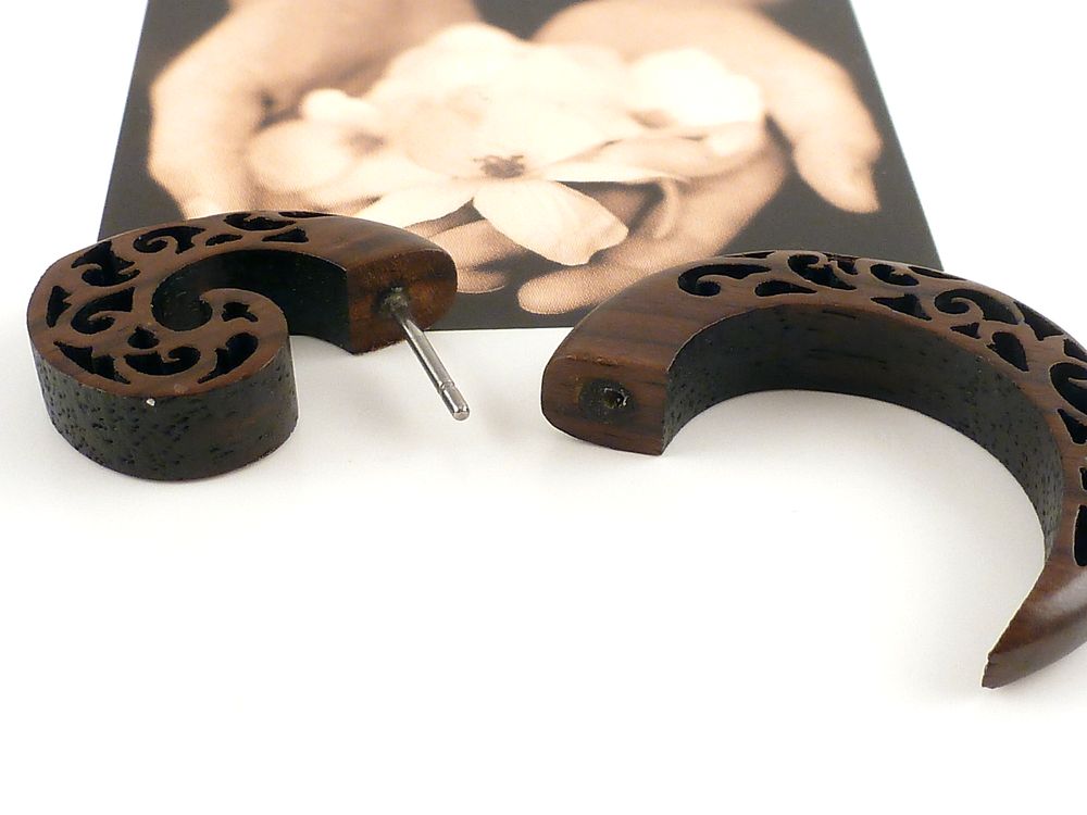 1 Stück Fake Ohrstecker gefertigt aus Holz