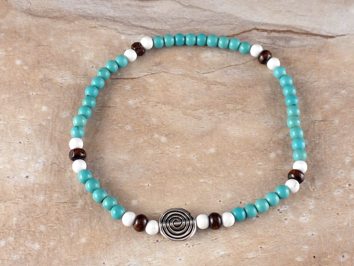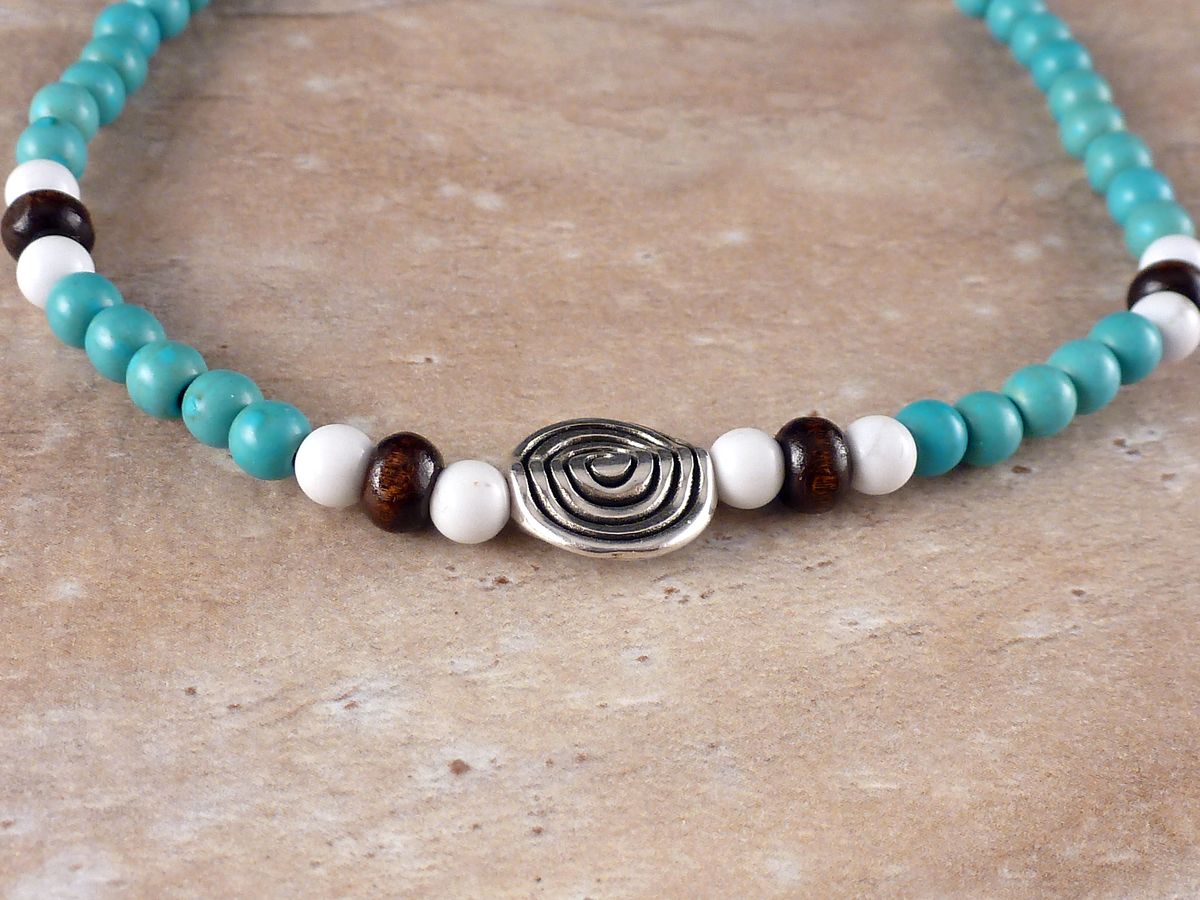 mit Holz und Steinperlen und einer Spirale aus