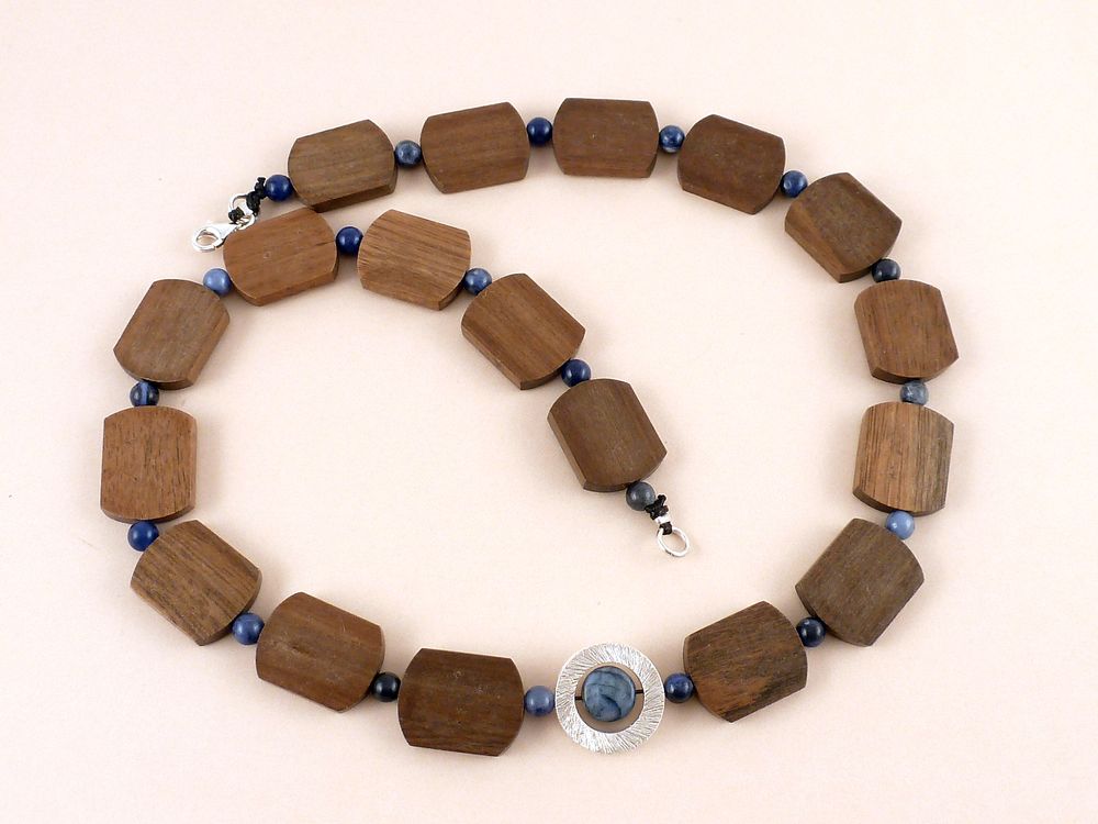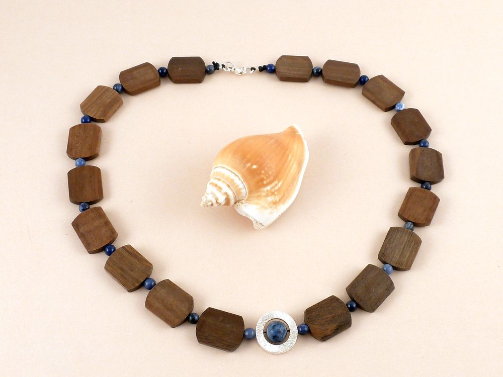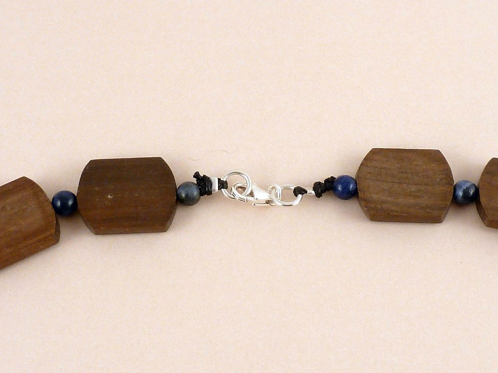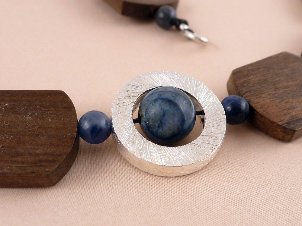 flachen Holzperlen mit blauen Sodalith Edelstein Perlen kombiniert