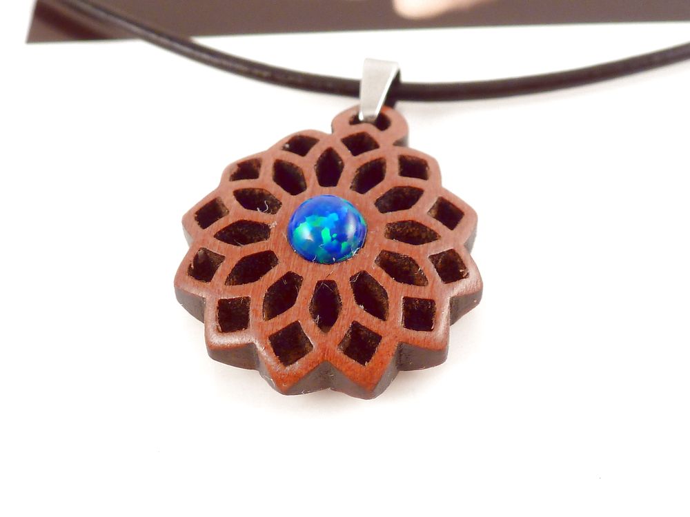 Halskette mit Blumen Anhängern aus Holz gefertigt