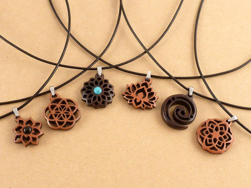 Halskette mit diversen Anhängern aus Holz gefertigt