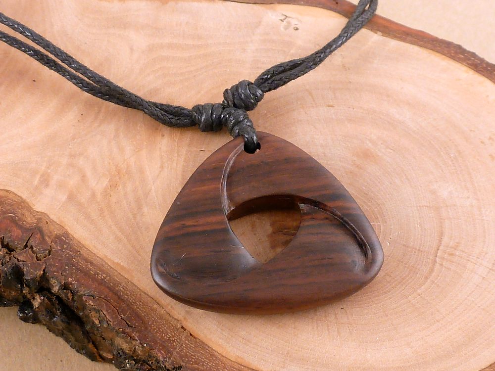 mit einem Anhänger aus Holz in Form eines Dreiecks