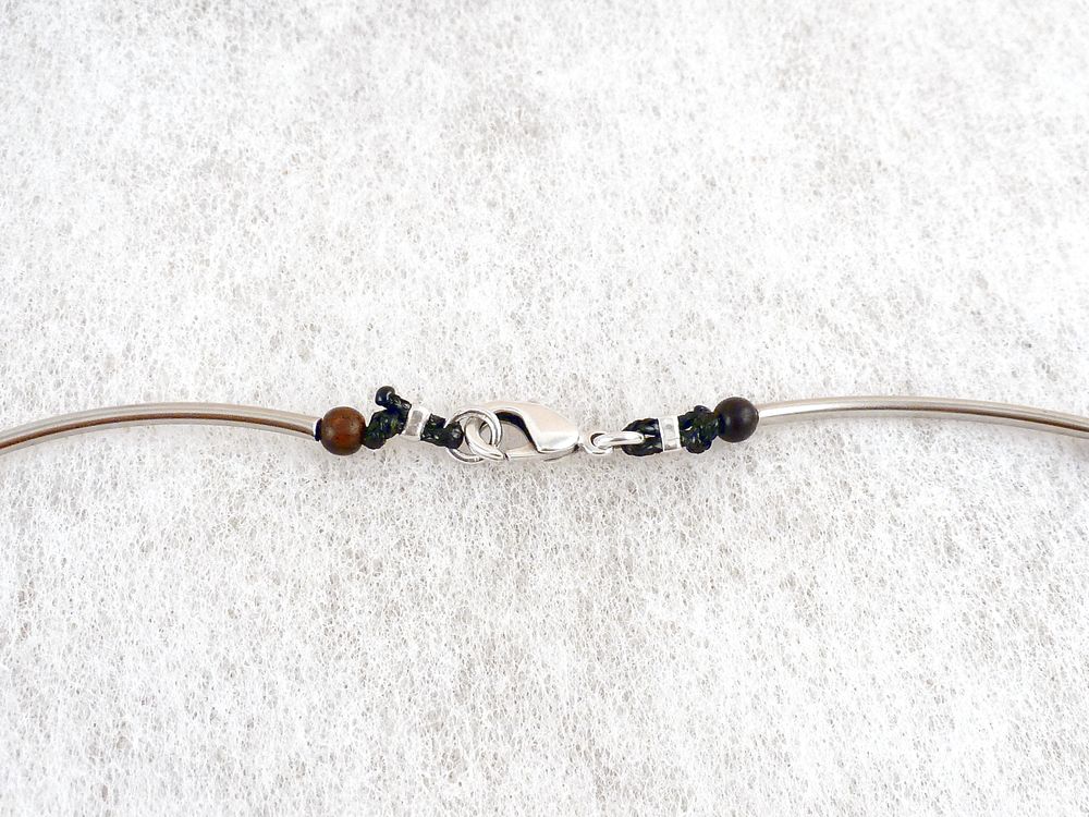 Verschlossen wird das Collier mit einem Karbiner Verschluss aus Messing versilbert
