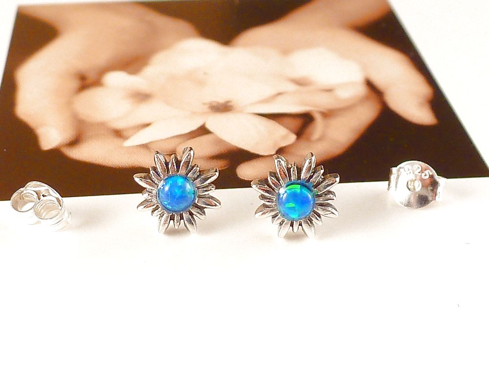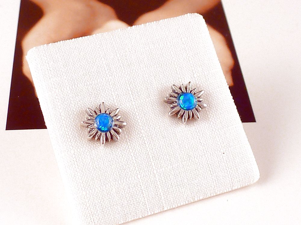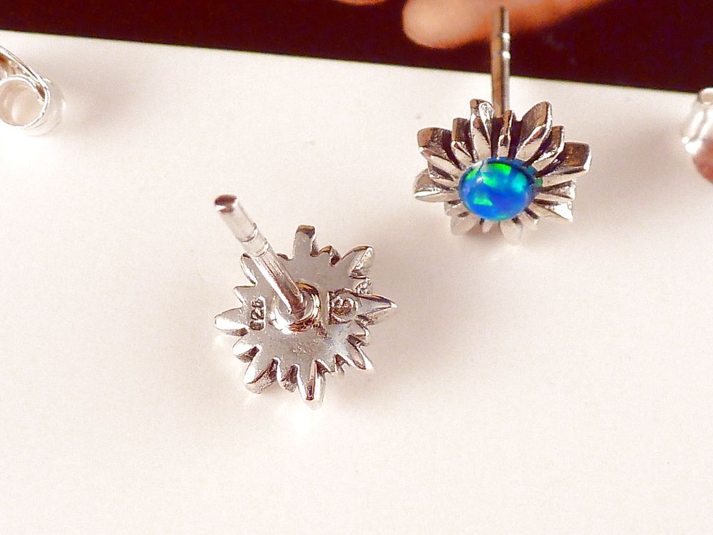 925 Sterling Silber Sonne mit künstl. Opalith in Blau