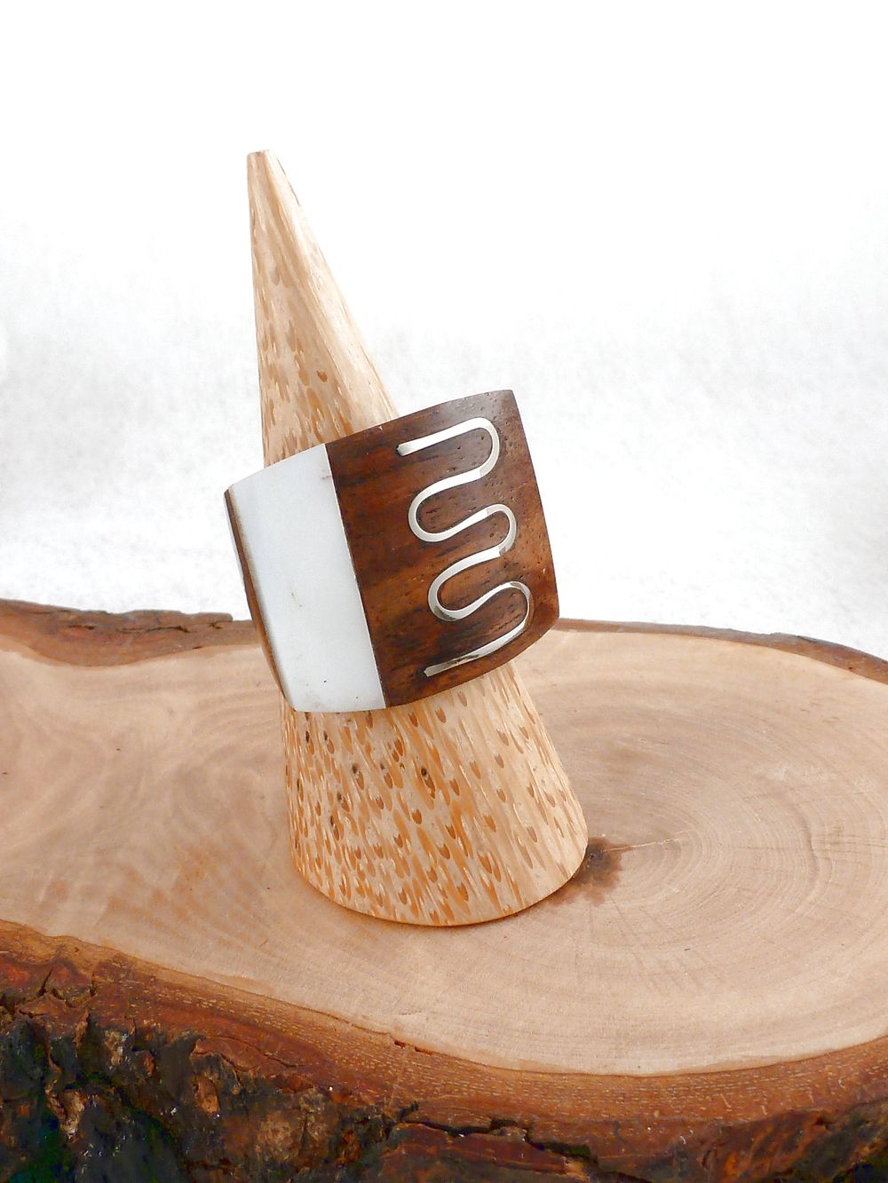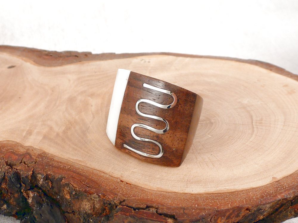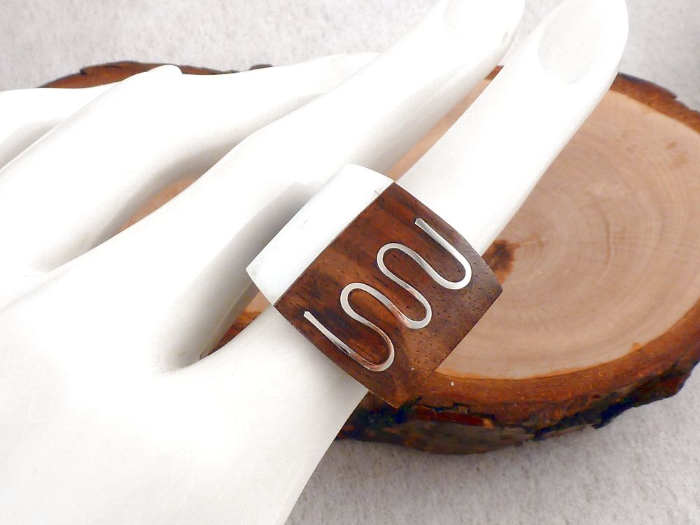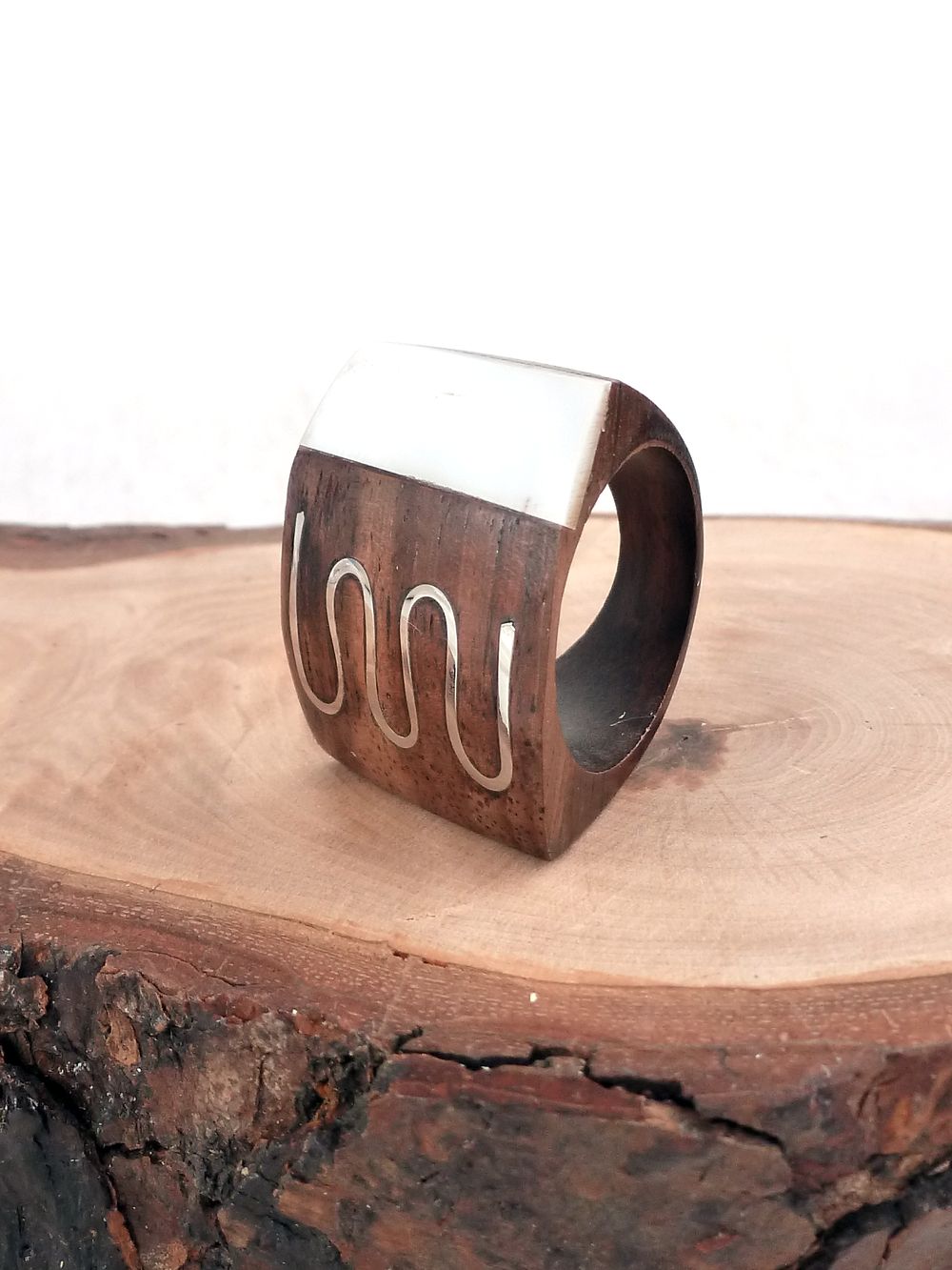 Holzring eckig mit Perlmutt